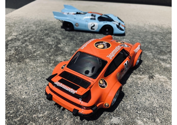 タミヤのポルシェ934イェーガーマイスター。缶スプレー塗装です。ダンロップとシェルのロゴは補完デカールを使用しています。
