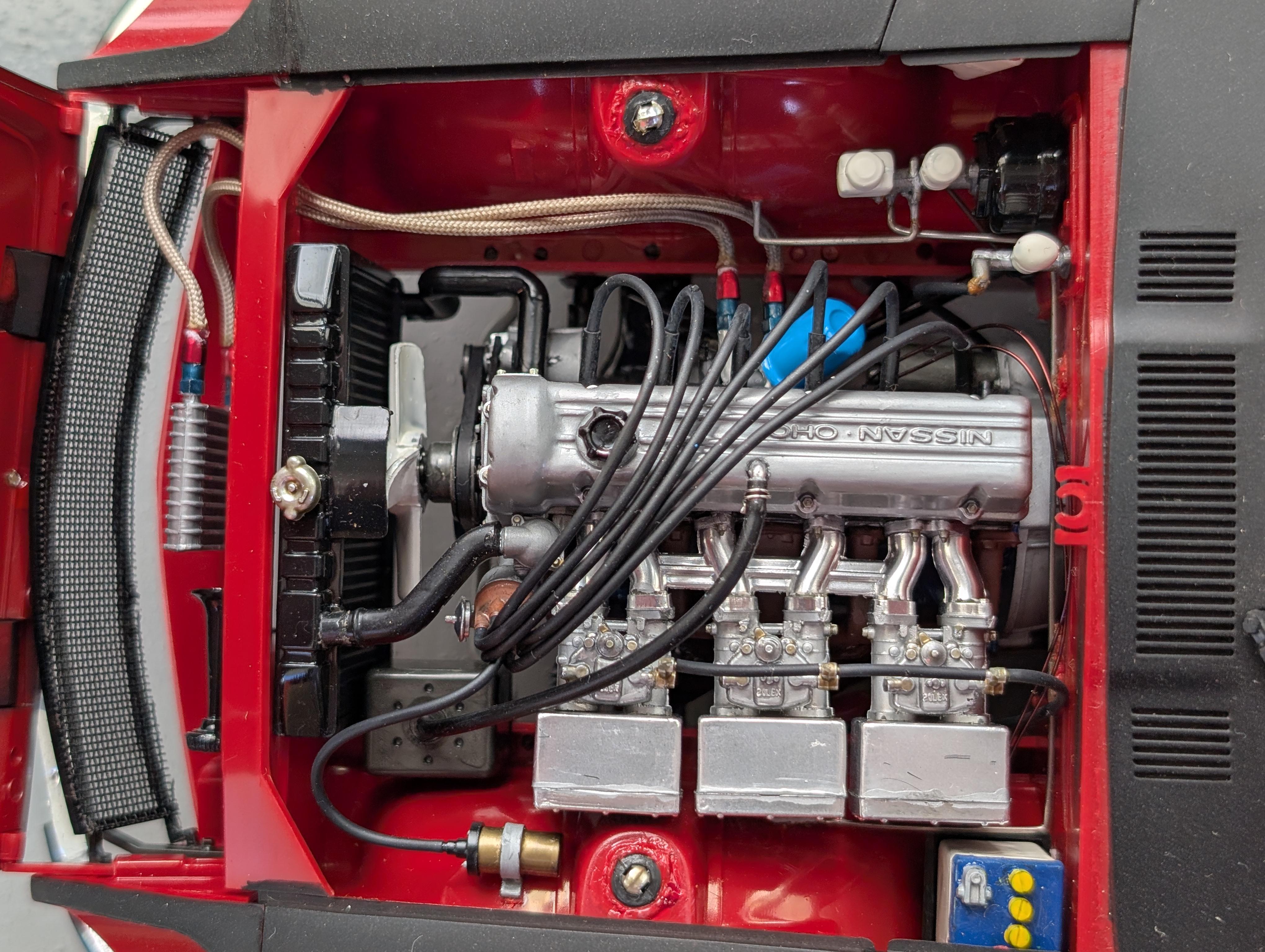 1971年第19回東アフリカ・サファリラリーで総合優勝を果たした名車がタミヤから1/12スケールで発売されました(現在は廃版)。人気のためか再販されて子供の頃と社会人になってから2回購入し作成した記憶があります。子供の頃は色塗はボンネットの黒の艶消し位でしたが2回目の購入は気合を入れて作成、エンジンルームの作成には補器の追加やオイルクーラーホースの変更などを加え実車の雰囲気をだしました。さらに実車のダメージ痕やヒットのへこみの再現を試みようとしましたが断念、ただ長期保管していた影響でデカールの色褪せ具合が実車感を出してきたように思います。
