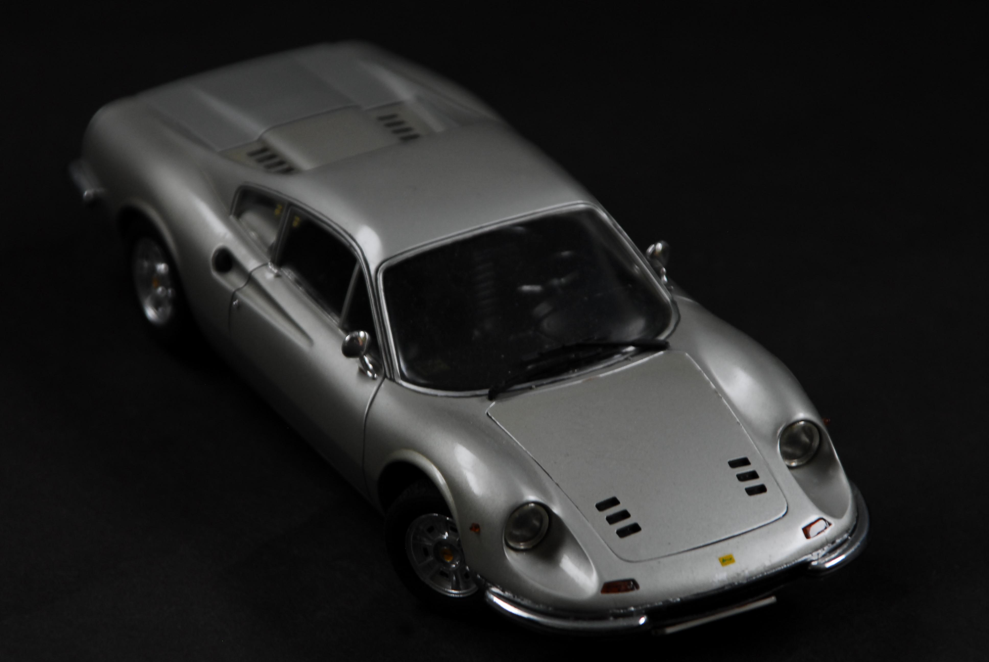 この模型もはるか昔の作成ですがクルマ模型の塗装で色の上にクリア塗装を吹けば実車のようになることを覚えてしゃにむに作った記憶があります。このキットのよいところは車体のデイテールが本物に極めて近く(数カ月前に富士五湖博物館かフェラーリ博物館に見学にいってきました(^^))デカールも窓のガラス部品の墨にある表記まで再現されていて感動しました。フェラーリの車種の中で唯一「フェラーリ」と名のつかないモデルだそうです。