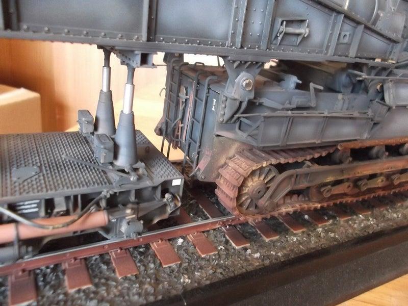 挟み込み式平台車2輌で吊り上げ鉄道輸送中を再現したキットです(履帯を別売りオプション連結式可動履帯に交換)2026-03-14 11:32:10