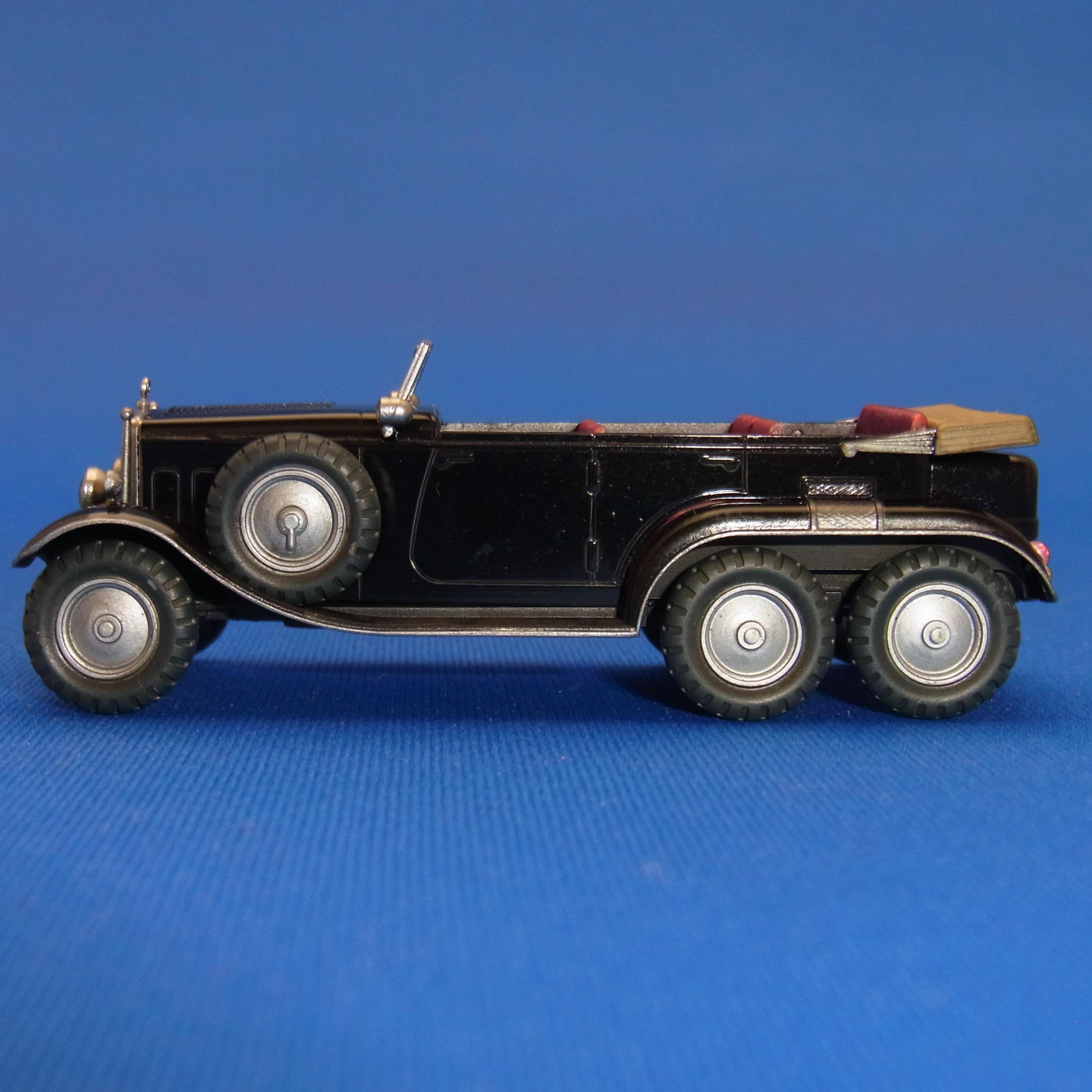 1/72 ハセガワ ドイツ メルセデス ベンツ G4型 小さな模型が好きで作っています。1/72スケールは飛行機とも並べられるの好きな大きさです。ライト類はUVレジンを使用しました。車体はウイノーブラックです。ラジエターなどのメッキ部はクレオスのメッキ系塗料です。2025-10-08 11:11:39