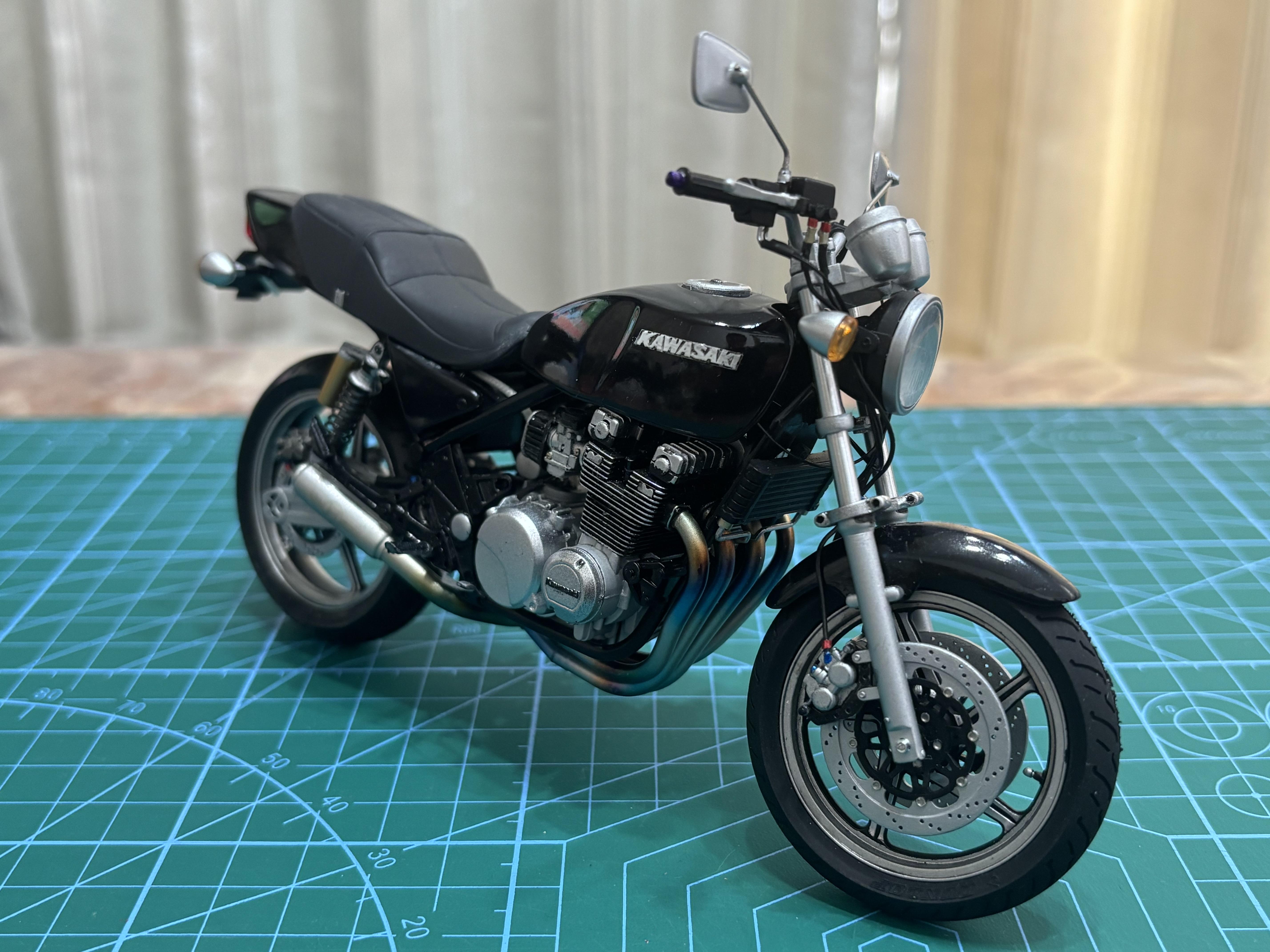 友人の愛車ゼファーをプレゼントしようと思い製作しました。2週間くらいで完成かなと思っていたのですが、送ってもらった実車写真を見てびっくり!改造・ドレスアップ箇所の何と多いことか