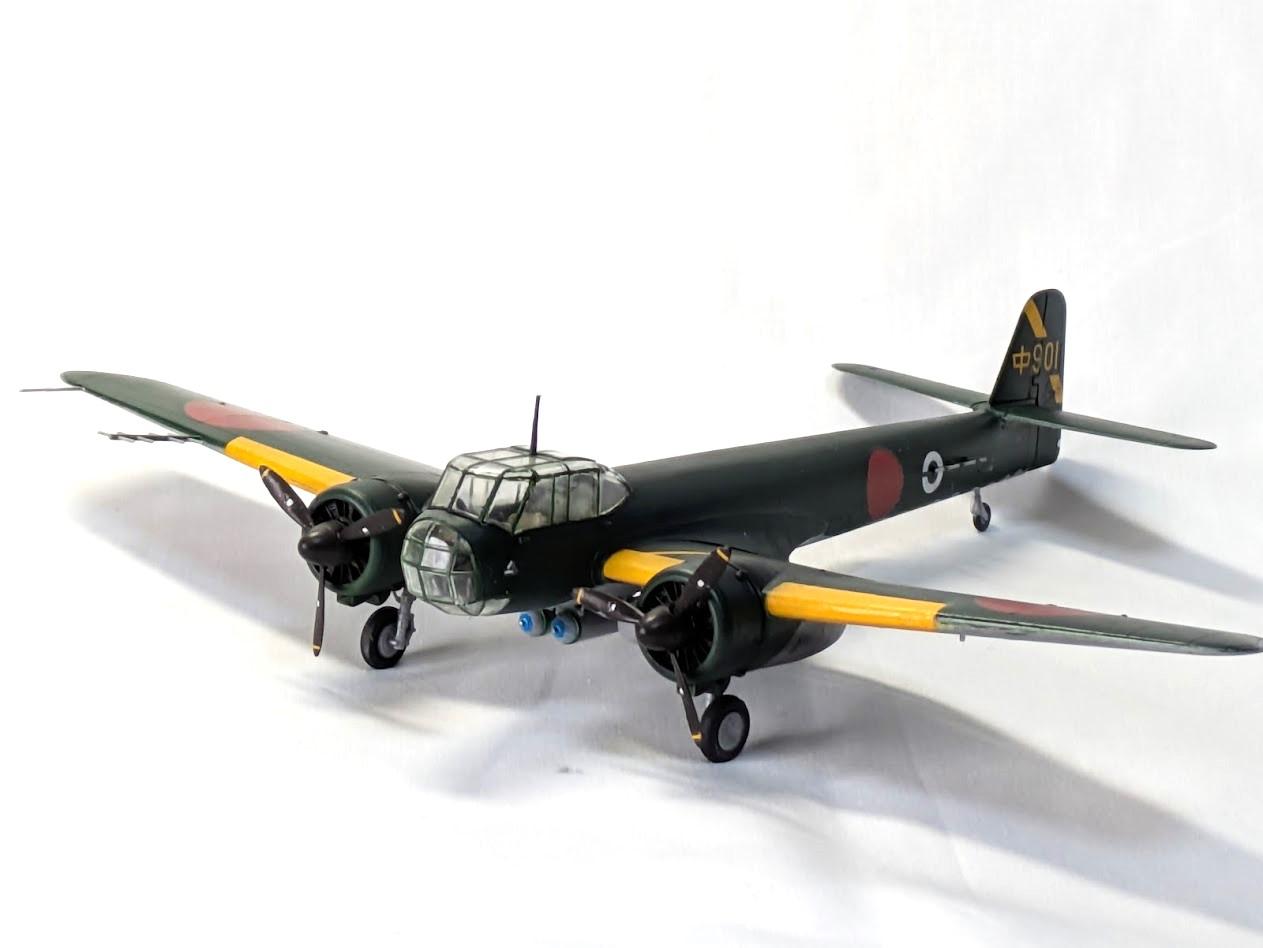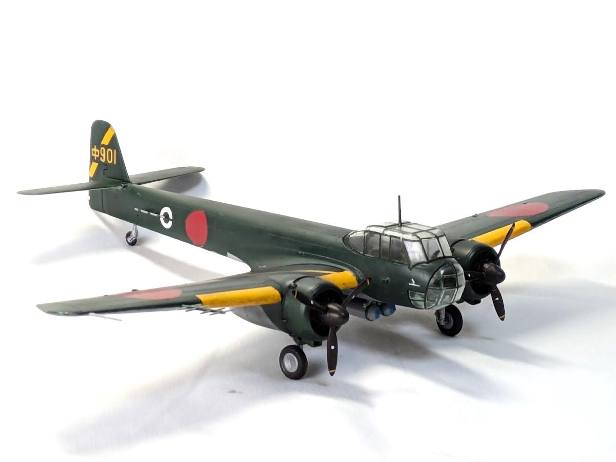 今回は珍しい機体を制作しました。塗装指定通りに塗ったのですが、ちょっと色合いには自信がありません。米軍潜水艦に対する劣勢を自覚し、潜水艦専門の哨戒機を製造していた海軍はすごいですね。実際に搭乗していた飛行士は、極端に前方に突き出たガラス張りのコクピットで、敵機からの攻撃を恐れず、味方艦隊や輸送船団を守るため、命を懸けて任務に当たられていたのですね。