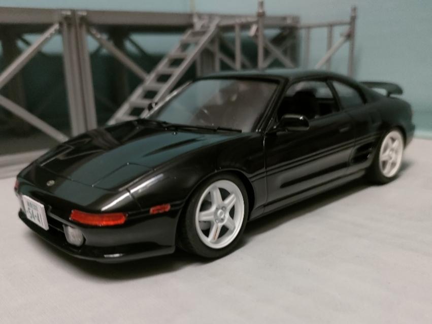 出掛けた先のショッピングモールで見かけた黒ボディX白ホイールの綺麗なMR-2が頭から離れず、高額ジャンクを落札・入手して即作製。