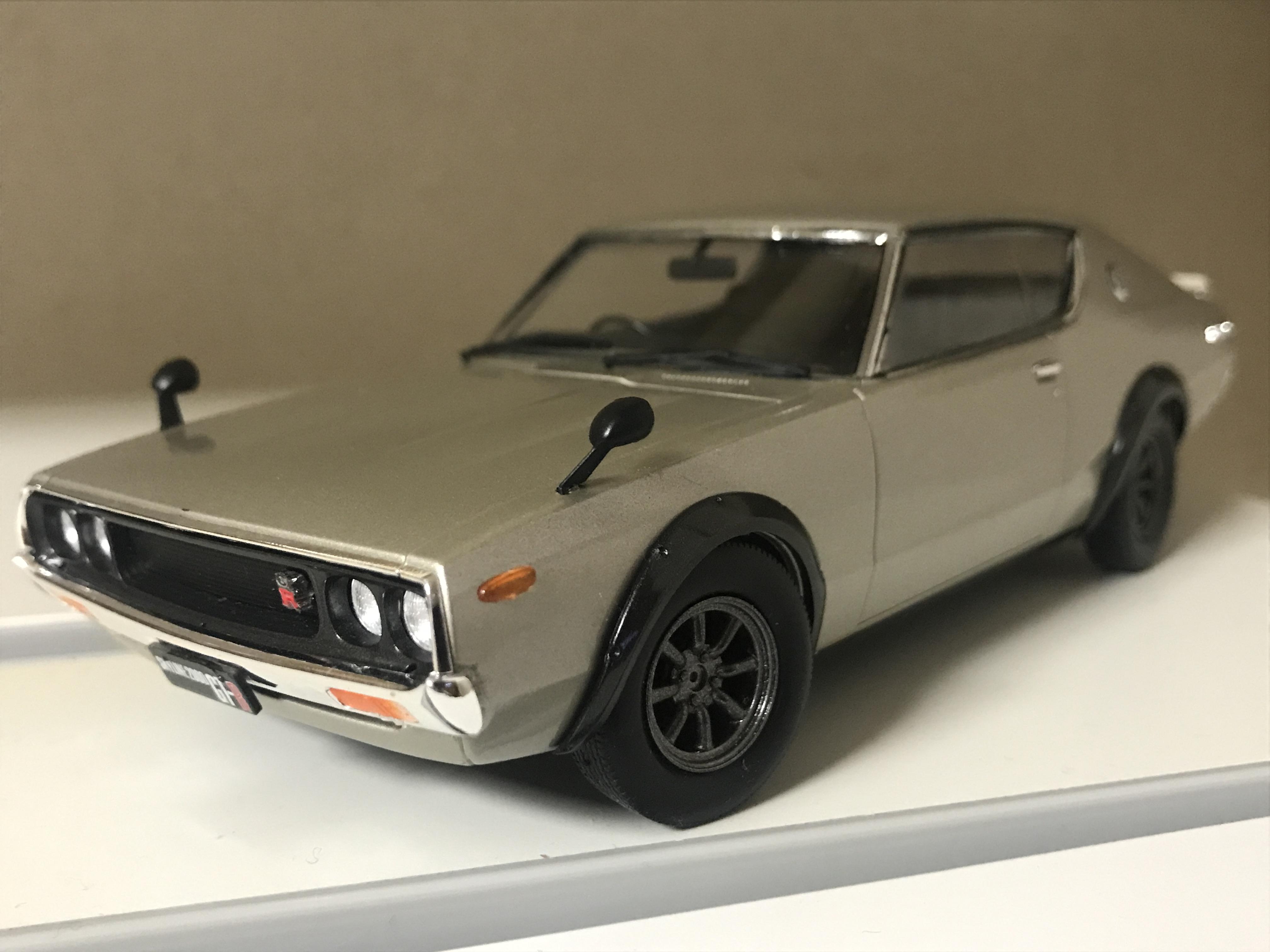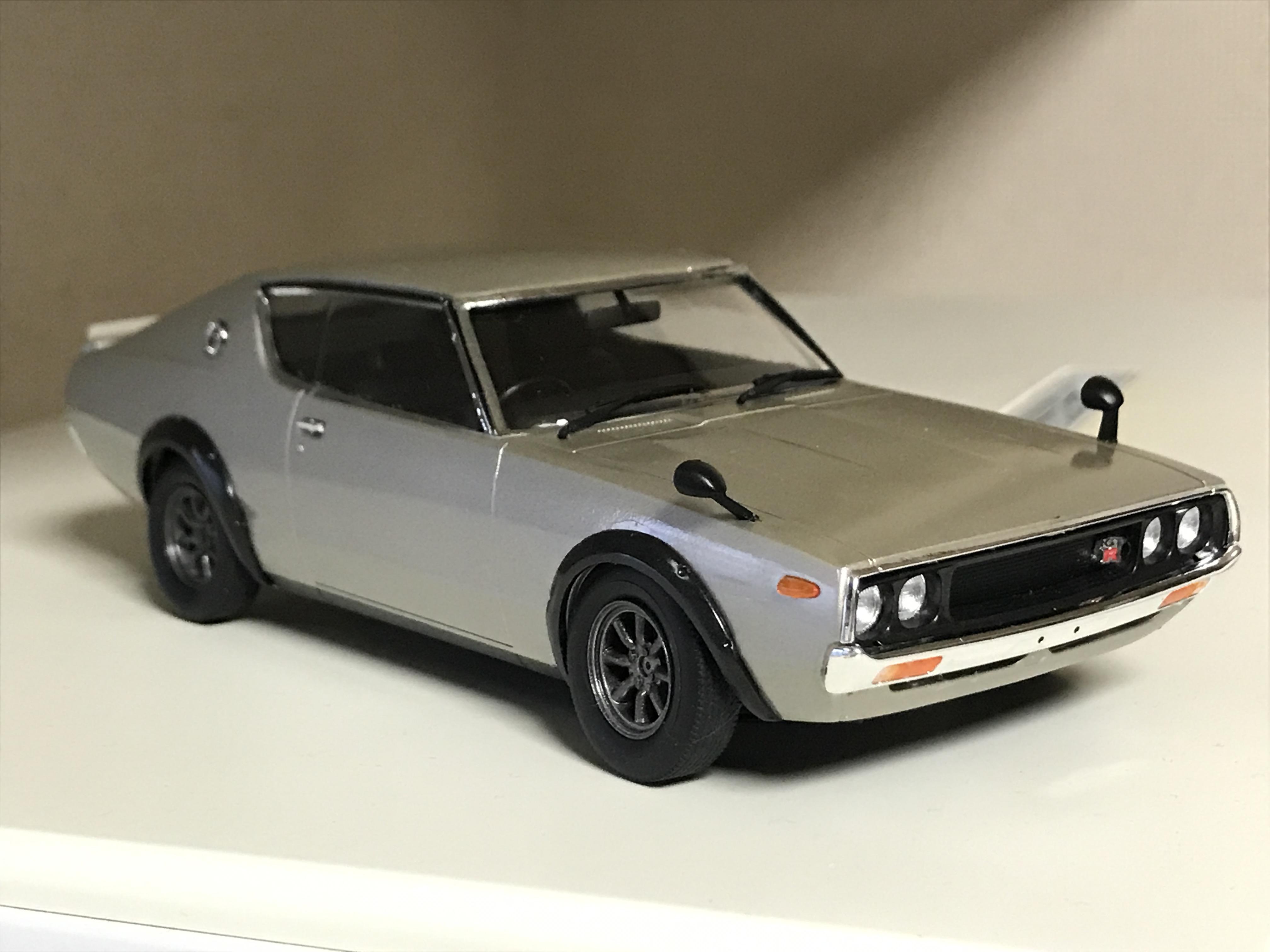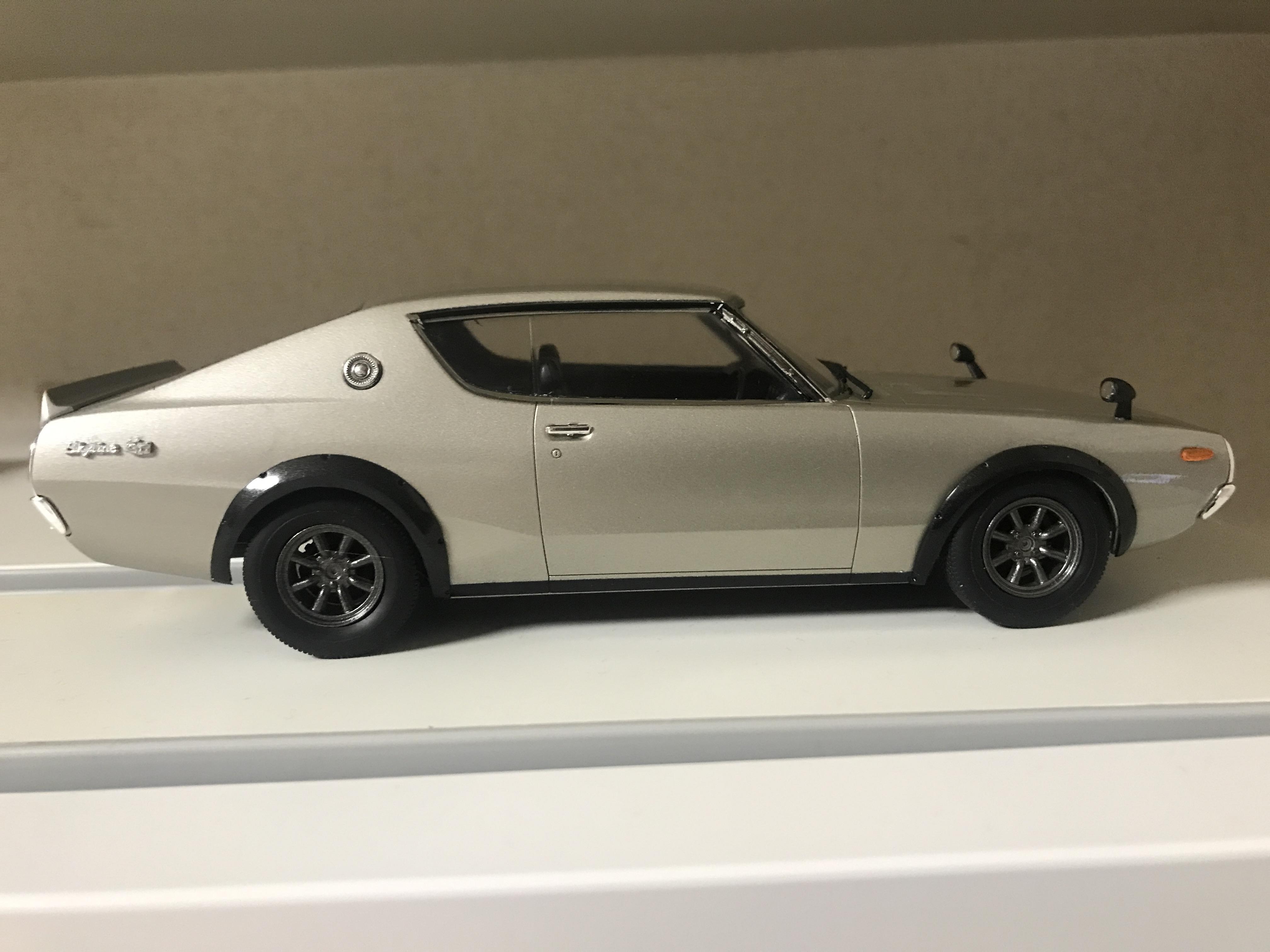 ハセガワのケンメリです。形は良いと思います。また、パーッ分割もそこそこ考えられています。また、メッキパーツもあり、そこそこ良い感じですが、何かバンパーなどは光り過ぎで、違和感あります。